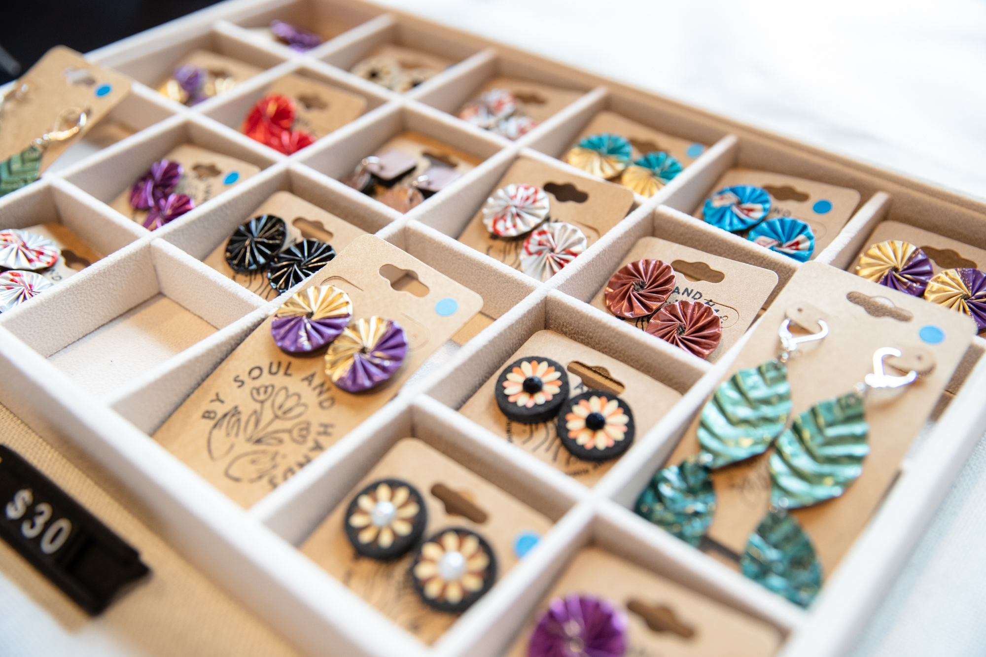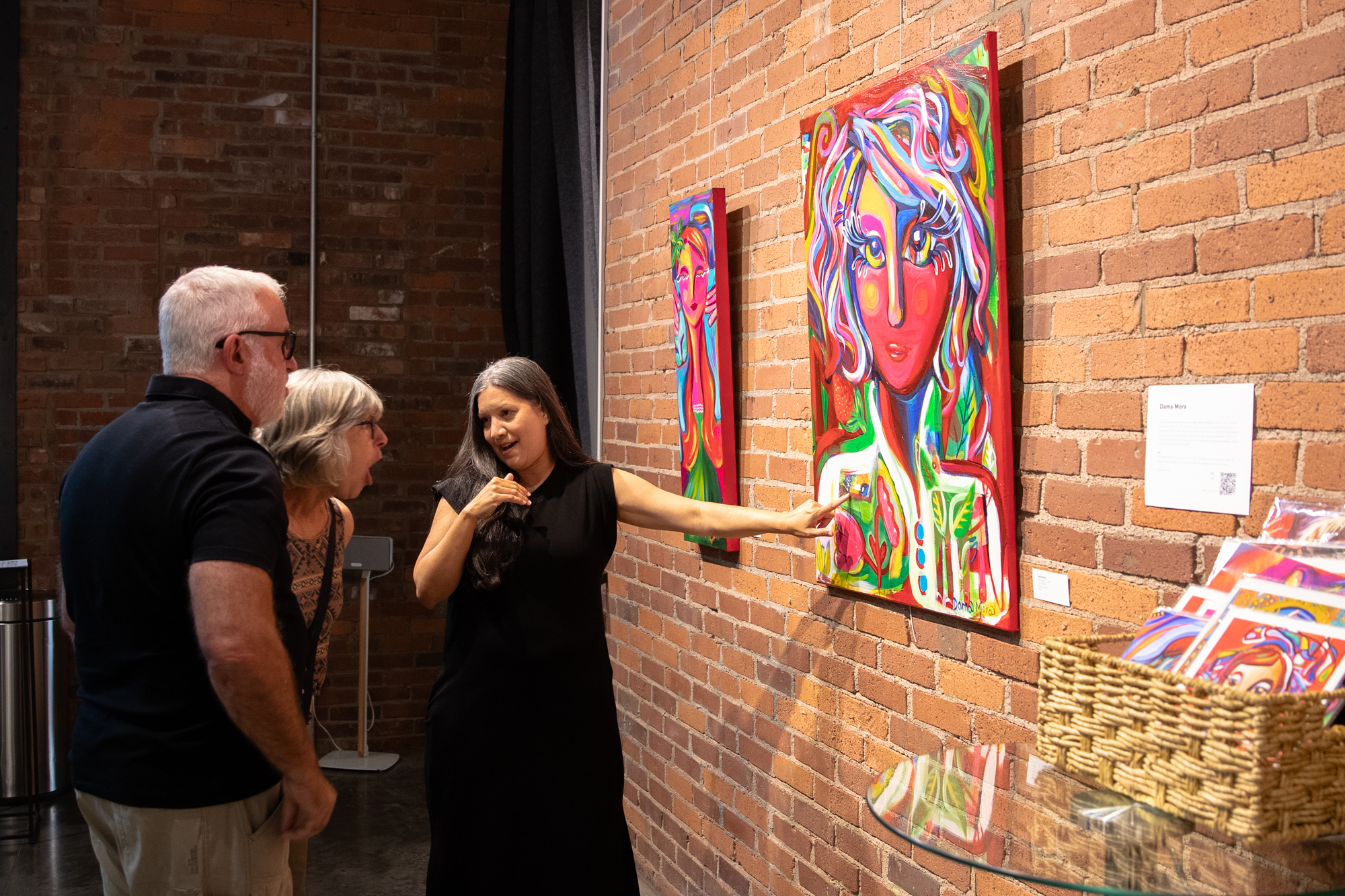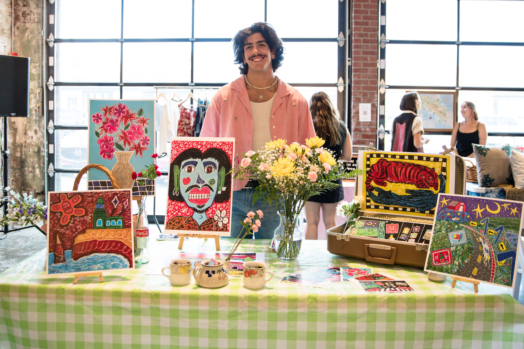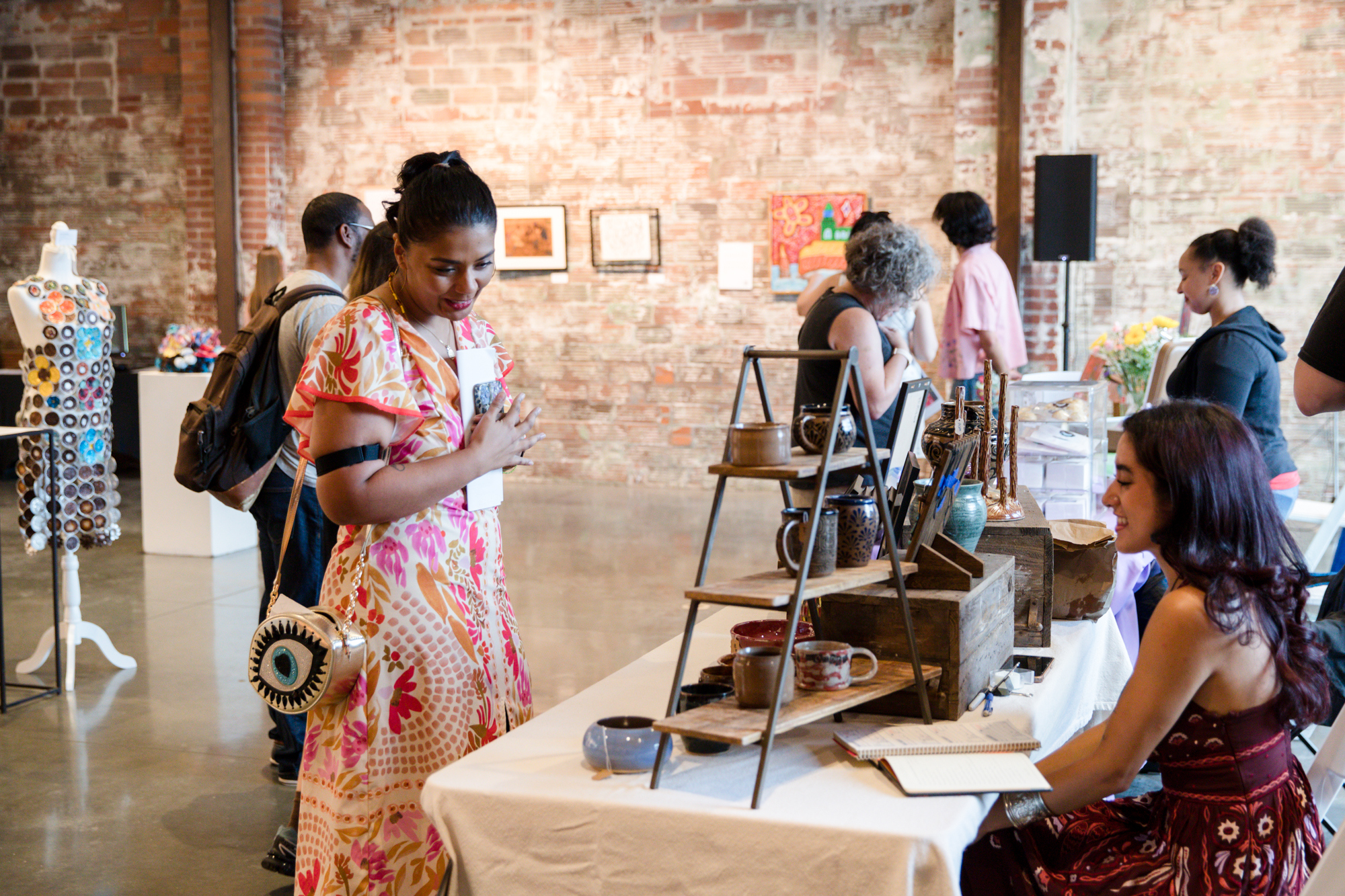The Relate exhibition closed with a reception and artist market during Gallery Walk on Friday, October 3rd, 2025. The community joined together in celebration with live music by Palonegro Latin Jazz. There were empanadas and baked goods for sale. Exhibiting artists brought small art prints, jewelry and ceramics for sale. It was such a beautiful and lively gathering of art and culture and we can’t wait to celebrate again next year!
